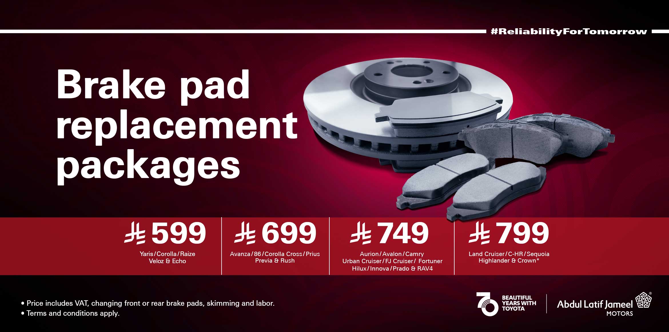 ALJ is running a tactical brake pads change campaign which includes changing rear or front brake pads, skimming, labor and VAT.