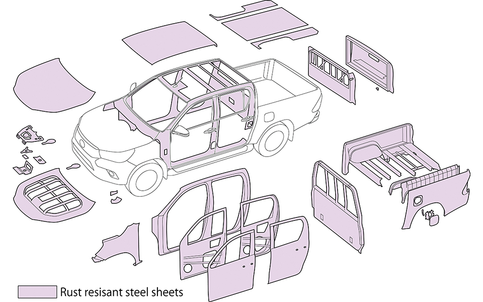 Contributes to the light body weight. Reinforcements to the joint structure, including the extensive use of spot welding, also enhance body rigidity