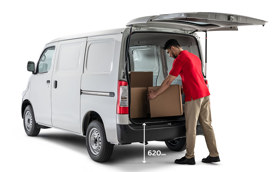 The design with a floor to ground height of 620mm reduces the burden when loading or unloading heavy cargo items. Ample cargo space height is provided to enable easy loading of taller items.