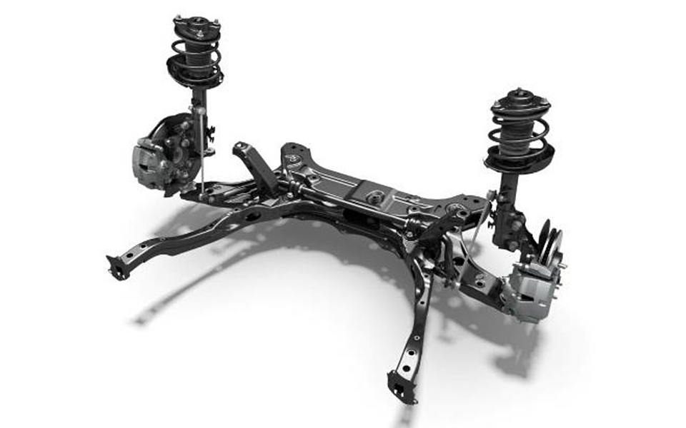A completely redesigned McPherson strut suspension is adopted to the front. The unprecedented structure reviews the method of fastening the steering gear, enabling direct handling with a sense of rigidity while reducing noise and vibration.