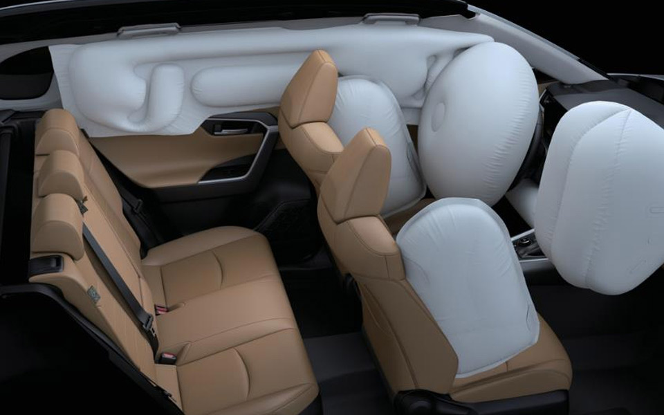 Available are driver and front-seat passenger airbags, front side airbags and curtainshield airbags for all three rows.
